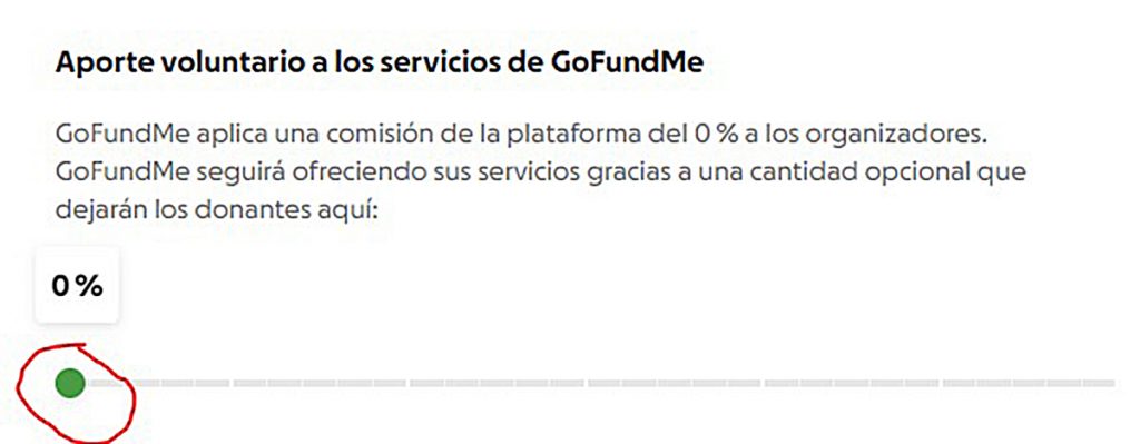 NOTA: Es importante aclarar que la plataforma GoFundme no cobra obligatoriamente ninguna comisión si no lo deseamos. Cuando hagáis vuestra donación fijaos que hay una barra deslizante que se puede mover para dejar el «aporte voluntario» en 0%, para que lo tengáis en cuenta: