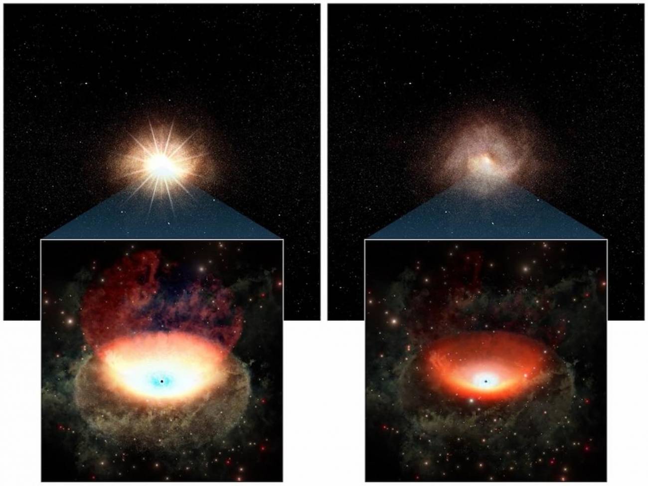 Un agujero negro supermasivo pierde parte de su luminosidad en 20 años