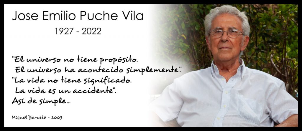 Hoy tenemos que daros una noticia muy triste: Puche nos ha dejado. La familia de José Emilio Puche, uno de nuestros socios más veteranos y queridos, nos ha avisado de que el pasado día 25 de agosto, a la edad de 95 años, abandonó este mundo y se fundió con el cosmos, al que tanto admiraba y a cuya observación y estudio dedicó tantísimos años de su vida. Ahora su luz se une a la del resto de estrellas del firmamento, donde brillará eternamente.