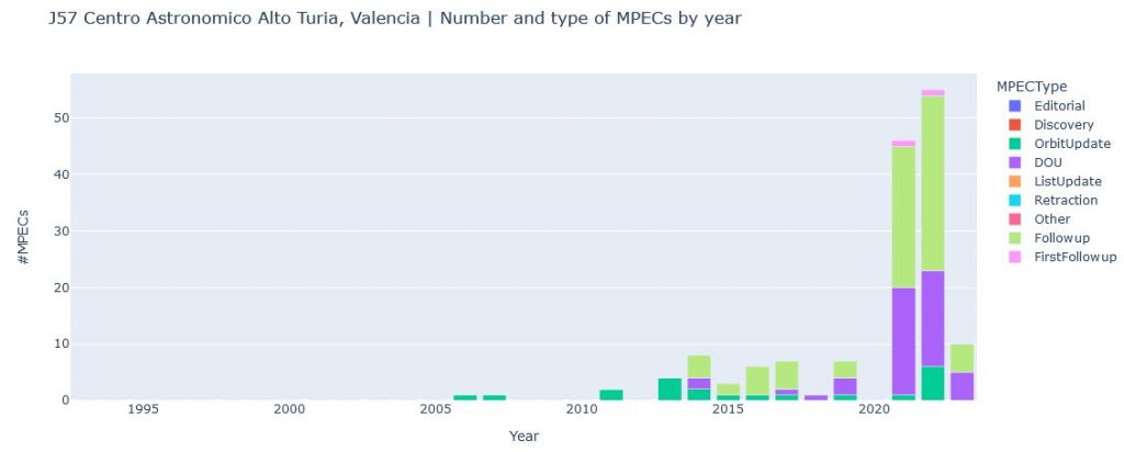 En el caso de AVA, el CAAT tiene asignado el código de observatorio J57 y desde él se han observado, medido y publicado la astrometría de muchos asteroides. Esta subvención busca potenciar los descubrimientos de NEOs, seguimiento y caracterización de los mismos a través de técnicas fotométricas diferenciales. A este respecto la productividad del CAAT ha sido de: