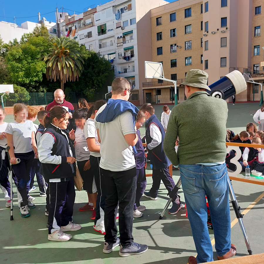 Desde un principio ha sido una de las actividades más solicitadas. Realizamos actividades desde hace décadas en colegios, academias e institutos para alumnos a partir de 7 años. Normalmente se trata de charlas y/o observación con telescopio.