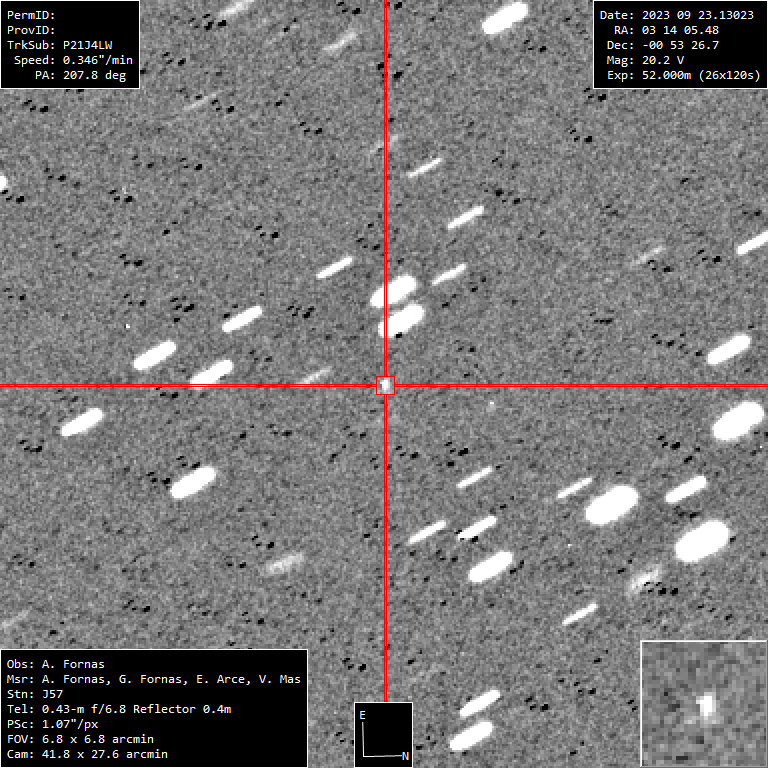 Aquí el MPEC del asteroide donde figura nuestro observatorio, el J57 en el CAAT.