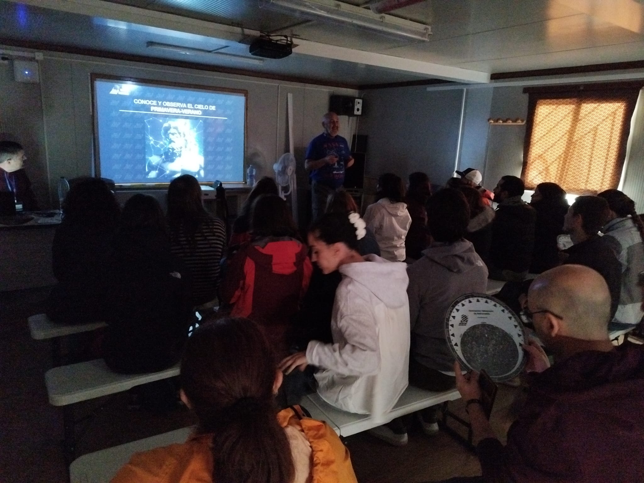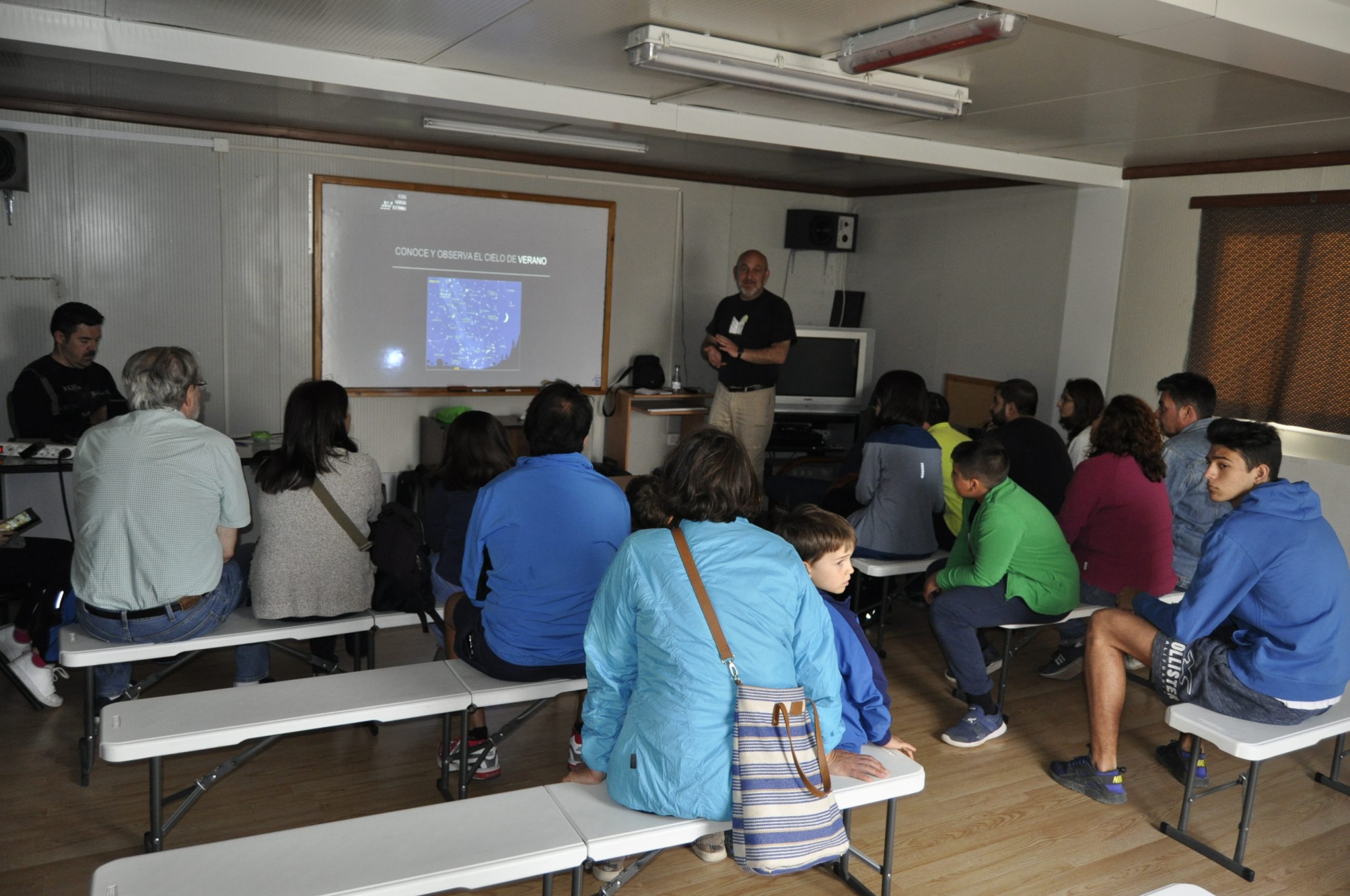 Se trata de un taller práctico de observación del cielo, en el que se explican las constelaciones más importantes visible en cada momento, y se acompaña un la observación con telescopios de los cuerpos celestes más importantes visibles en ese momento.