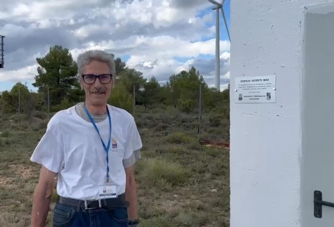 Era una petición unánime de todos los socios desde hace mucho tiempo, y por fin hoy, aprovechando la celebración de la Jornada de Puertas Abiertas para conmemorar el 25 aniversario de la inauguración del CAAT, hemos querido rendir un pequeño homenaje a nuestro querido compañero Vicente Más asignando su nombre al tercer edificio que compone el observatorio, el que alberga el telescopio Takahashi. En una breve pero emotiva ceremonia a la que han asistido los voluntarios congregados para el evento, nuestro compañero Vicente y su esposa Maica, visiblemente emocionados, han agradecido el apoyo y el cariño recibido durante todos estos años. Vicente ha destacado que el auge del CAAT ha sido posible gracias a un trabajo común en equipo en el que han participado muchos compañeros, algunos de los cuales ya no están en AVA. Ha tenido unas palabras de recuerdo y agradecimiento para Angel Flores, de quien recibió el testigo de la dirección del CAAT y la responsabilidad de cuidar y mantener sus instalaciones, algo que Vicente ha hecho de manera incansable y con mucho ahínco durante todo este tiempo. Y ha agradecido en especial el apoyo recibido por su esposa Maica, que ha estado siempre a su lado apoyándole en todas aquellas ocasiones en que su marido tuvo que ausentarse de casa y de su familia para dedicar su tiempo al mantenimiento y mejora del observatorio. ¡Enhorabuena, compañero, un reconocimiento sin duda muy merecido!