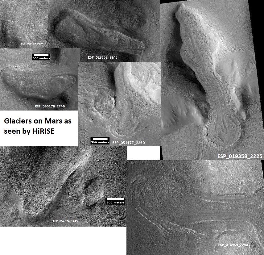 Uno de los grandes descubrimientos relacionados con Marte en las últimas décadas son los glaciares de latitudes medias. En las regiones del planeta rojo situadas entre 30º y 50º de latitud norte y sur se encuentran numerosas estructuras similares a los glaciares terrestres. Sin embargo, su superficie está cubierta por rocas, no por hielo.
