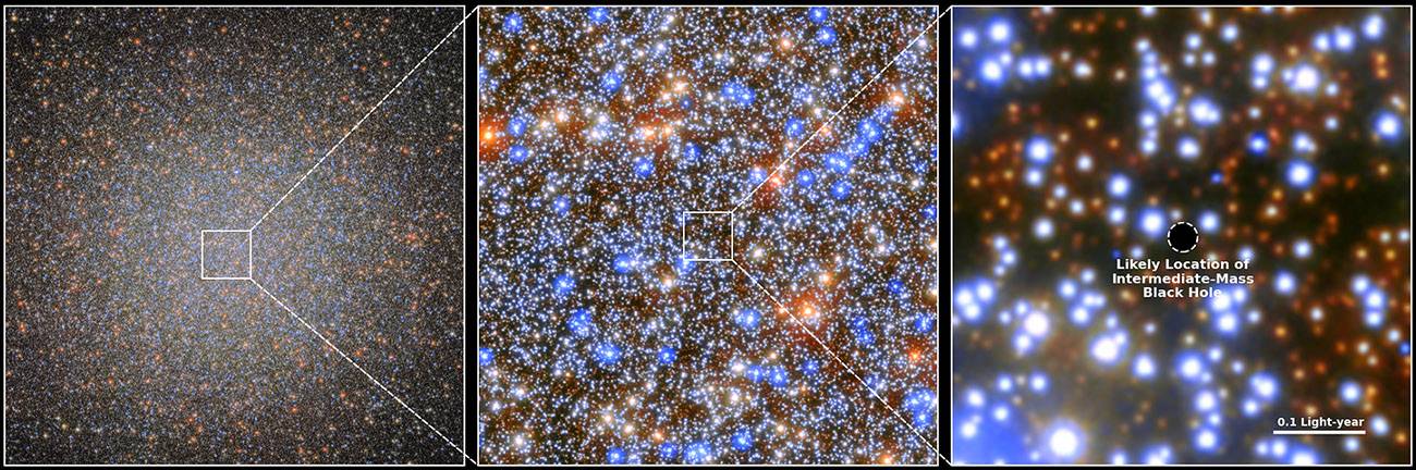 Los astrónomos han encontrado agujeros negros con una amplia gama de masas, desde los que tienen alrededor de 5-150 M⊙ (masas solares) hasta los supermasivos con más de 100 000 M⊙ hallados en los centros de las galaxias. Sin embargo, solo se han descubierto unos pocos agujeros negros candidatos de masa intermedia, entre 150 y 100 000 veces la masa del Sol. Entre ellos se incluyen detecciones en dos cúmulos globulares masivos alrededor de la galaxia de Andrómeda, algunas fuentes hiperluminosas de rayos X y varios núcleos galácticos activos en galaxias enanas. Sin embargo, todos estos candidatos son difíciles de confirmar por su lejanía. Ahora se ha encontrado un escenario mucho más cercano: el cúmulo globular estelar Omega Centauri (ω Centauri), dentro de nuestra Vía Láctea.