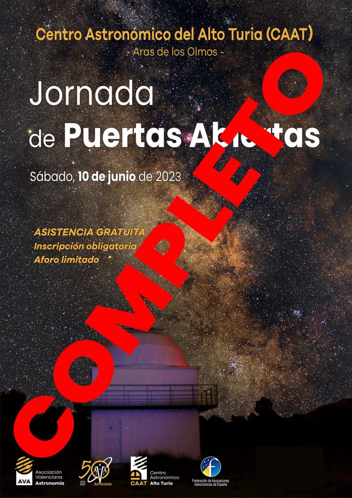 El 22 de mayo se han cumplido 25 años de la inauguración del Centro Astronómico del Alto Turia (CAAT), situado en Aras de los Olmos. Para conmemorar esta efeméride, la Asociación Valenciana de Astronomía te invita a visitar el observatorio el sábado 10 de junio en una nueva Jornada de Puertas Abiertas. Además de conocer cómo es por dentro un observatorio astronómico y los trabajos que allí se llevan a cabo, disfrutarás de una magnífica velada bajo las estrellas en uno de los lugares con cielos más limpios y oscuros de toda la Península Ibérica. Te mostraremos las constelaciones y estrellas más importantes del cielo nocturno y podrás observar a través de nuestros potentes telescopios.