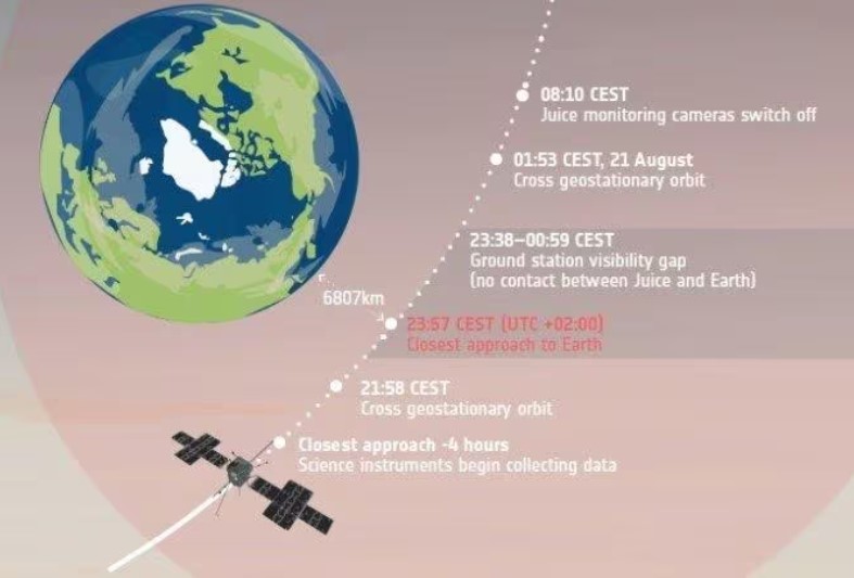 La sonda europea JUICE realizará una doble maniobra histórica el próximo 19 y 20 de agosto. Durante esos dos días, la nave sobrevolará la Luna y nuestro planeta para realizar una doble asistencia gravitatoria que le permitirá llegar a Júpiter en el año 2031. Esta es la primera vez en la historia que se intenta una maniobra de este tipo.