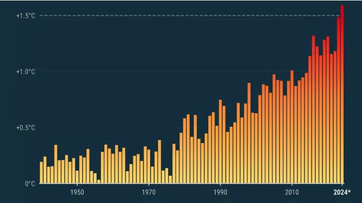 La temperatura media anual del planeta supera por primera vez el umbral de + 1,5 ºC fijado en el Acuerdo de París