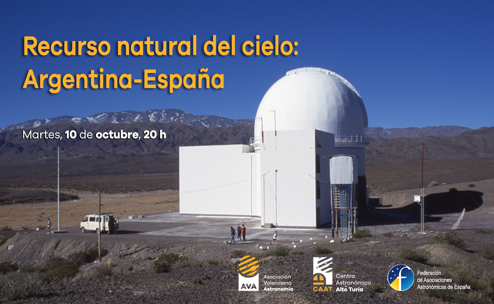 Claudia Rita Álamo es licenciada en Turismo -especializada en astroturismo- y trabaja en el Centro Astronómico el Leoncito (CASLEO), en San Juan (Argentina), un observatorio profesional de referencia en su país que destaca en el campo de la investigación y divulgación astronómica. Se encuentra en España visitando diversos enclaves que son referentes de la divulgación de la astronomía y el turismo de estrellas, entre ellos nuestro observatorio del CAAT. En la charla del martes nos hablará de astroturismo, astronomía profesional y amateur en Argentina, así como de contaminación lumínica.