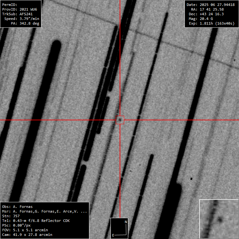 Magnitud 20.5 pero desplazamiento lento por lo que con 163 tomas de 40 segundos se han obtenido 3 mediciones de alta calidad.