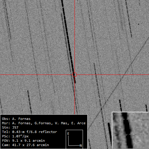 Aquí el MPEC del asteroide donde figura nuestro observatorio, el J57 en el CAAT.