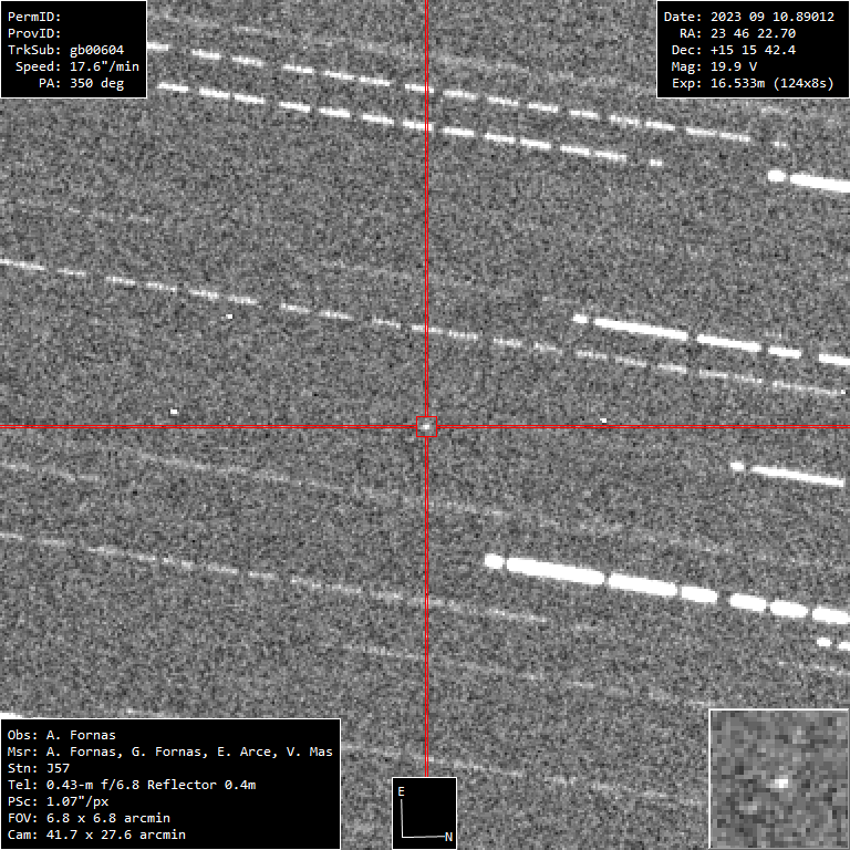 A pesar de las nubes pudimos capturar este NEO que se desplazaba a unos 15″/min.