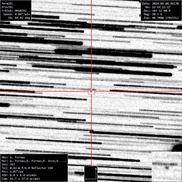 Aquí el MPEC del asteroide donde figura nuestro observatorio, el J57 en el CAAT.