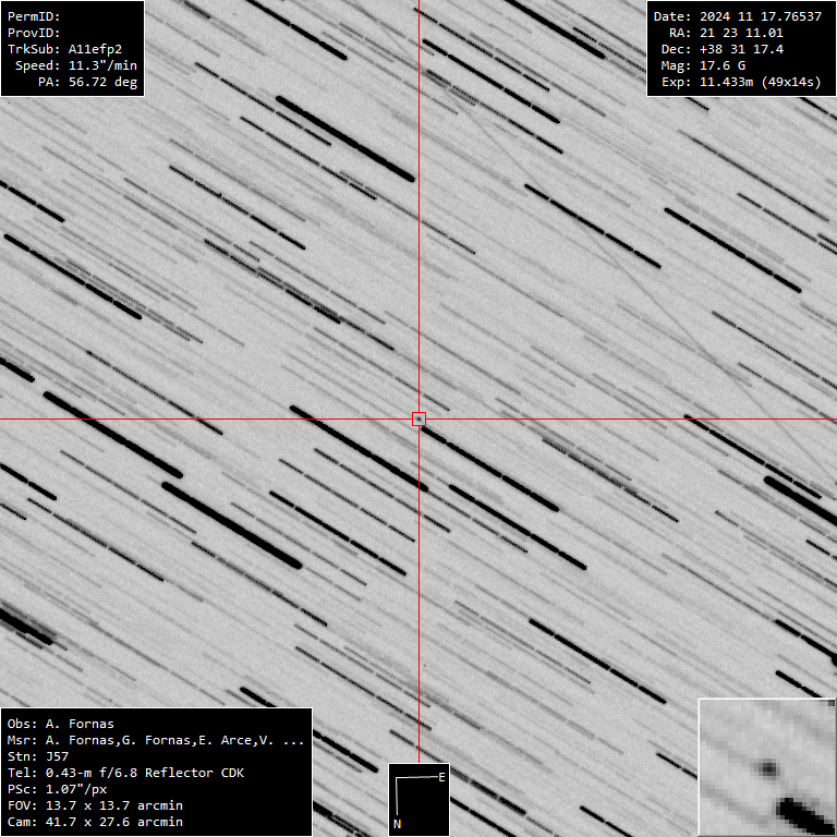 Aquí el MPEC del asteroide donde figura nuestro observatorio, el J57 en el CAAT.