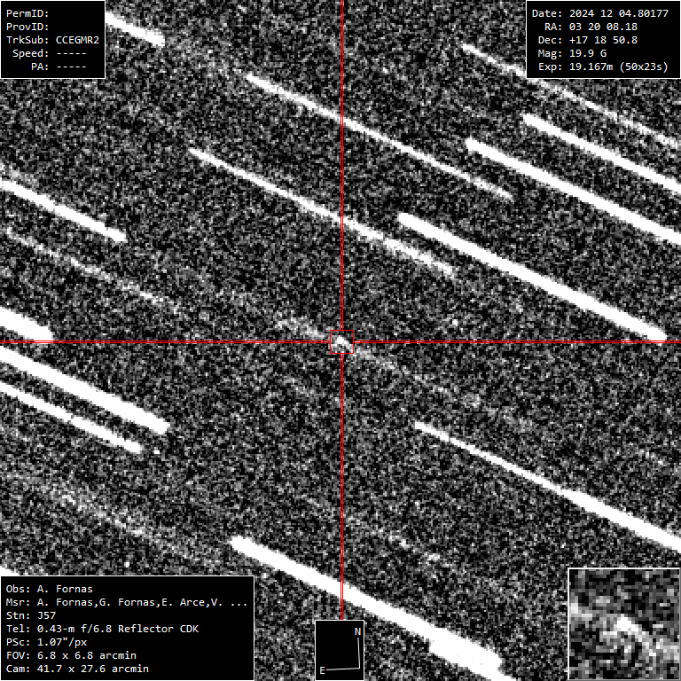 Aquí el MPEC del asteroide donde figura nuestro observatorio, el J57 en el CAAT.