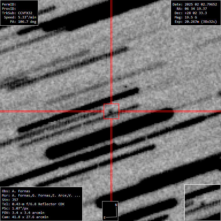 Aquí el MPEC del asteroide donde figura nuestro observatorio, el J57 en el CAAT.