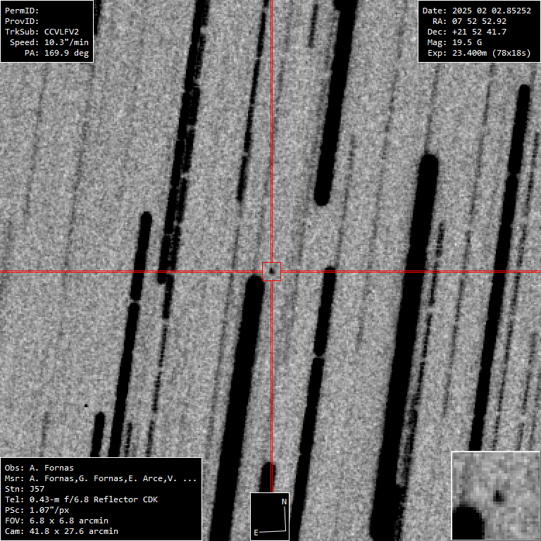 Aquí el MPEC del asteroide donde figura nuestro observatorio, el J57 en el CAAT.