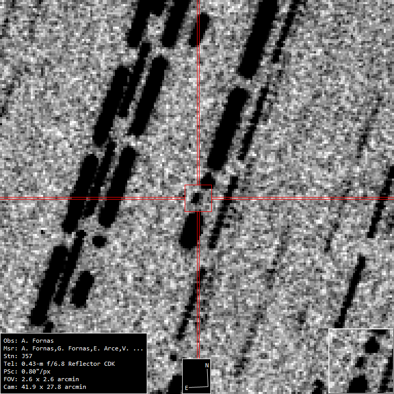 Aquí el MPEC del asteroide donde figura nuestro observatorio, el J57 en el CAAT.