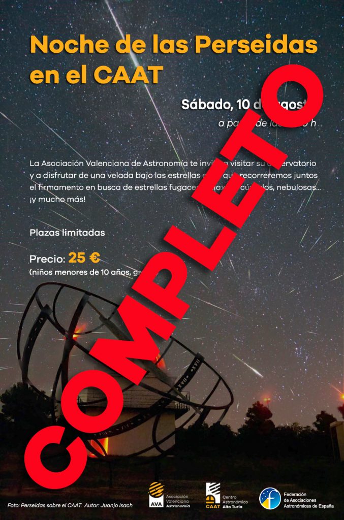 La Asociación Valenciana de Astronomía te invita a visitar su observatorio del Centro Astronómico del Alto Turia (CAAT, Aras de los Olmos) y a disfrutar de una velada bajo las estrellas en la que recorreremos juntos el firmamento en busca de estrellas fugaces, galaxias, cúmulos, nebulosas… ¡y mucho más! ¡No te lo pierdas!