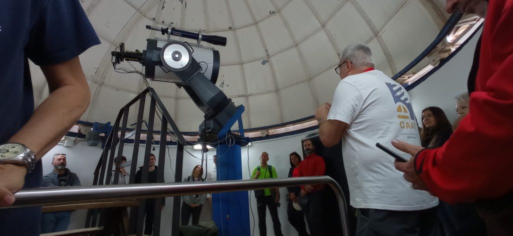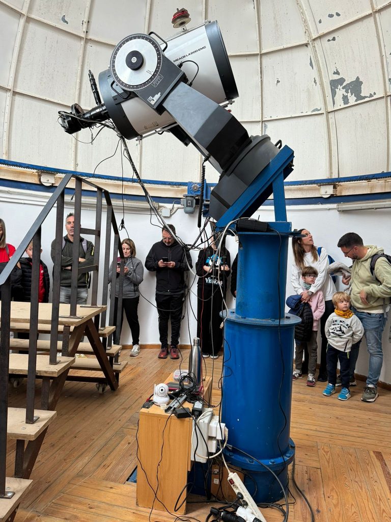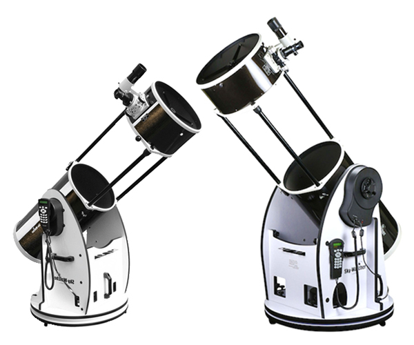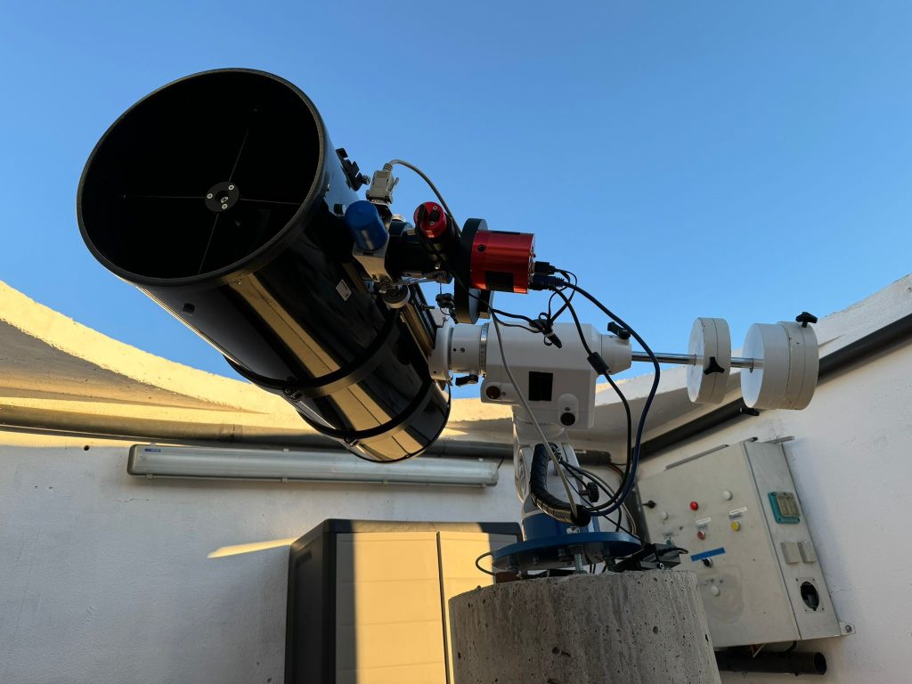 Las visitas de grupos de personas a nuestro observatorio son muy frecuentes, ya que la divulgación es una de las principales tareas que realizamos. Para ello, `nuestra Escuela de Astronomía cuenta con un par de telescopios casi idénticos, con aperturas considerables. Se trata de dos telescopios Newton marca de 305 y 355 mm de gran sencillez de uso, pero con altas prestaciones, muy adecuado para atender observaciones colectivas que se realizan desde la explanada del observatorio. Ambos poseen un tubo retráctil que permite reducir su longitud facilitando su transporte, y también van motorizados en ambos ejes y poseen funciones de búsqueda automática de miles de objetos. Sus características son: