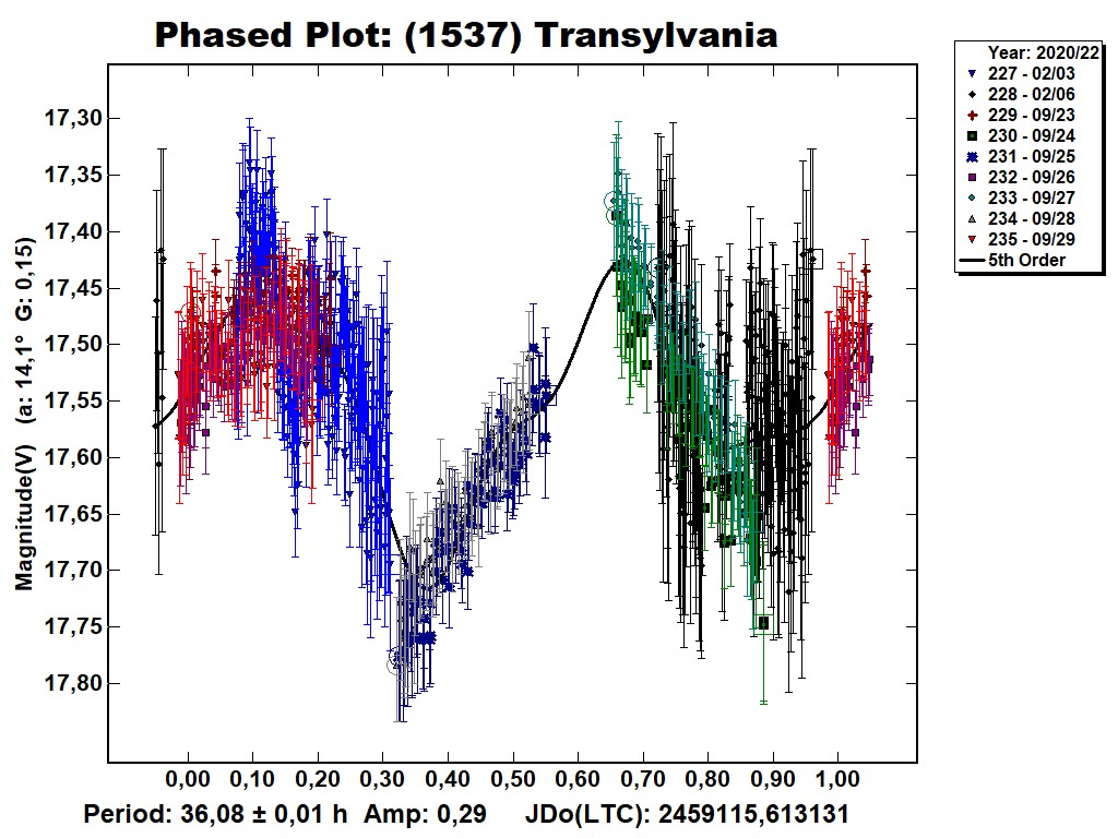 Es un asteroide del cinturón principal descubierto el 27 de agosto de 1940 por G. Strommer. Hicimos observaciones los días 3 y 6 de febrero de 2022. En la base de datos del ALCDEF se tomaron los datos de Polakis (2021) y se unieron con los nuestros mejorar la calidad del resultado. Se obtuvo un periodo de 36,08 horas que no coincide con las 144 horas estimadas previamente. Se recomiendan más sesiones de observación para obtener una estimación más precisa.