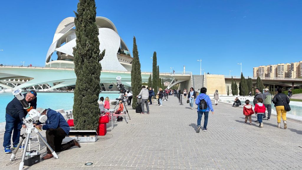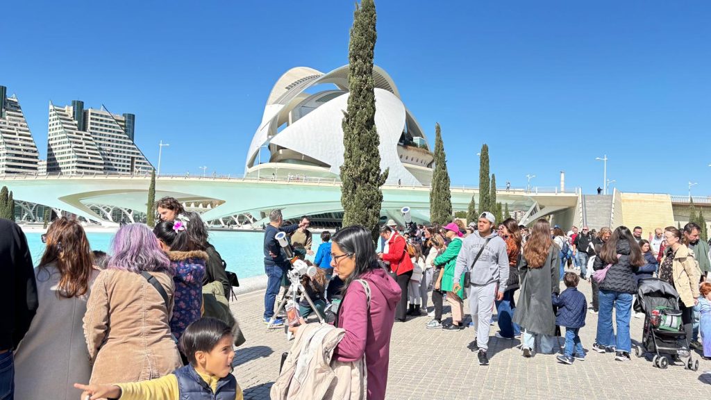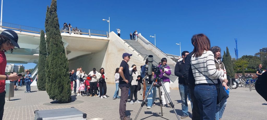 El pasado 29 de marzo, miles de ojos se alzaron hacia el cielo para disfrutar de un espectáculo astronómico único: un eclipse parcial de Sol. Este fenómeno, visible en varias partes del mundo, fue seguido con gran entusiasmo por más de 1.300 personas en la ciudad de Valencia, en una actividad organizada por el Museo de las Ciencias Príncipe Felipe en colaboración con la Asociación Valenciana de Astronomía (AVA).