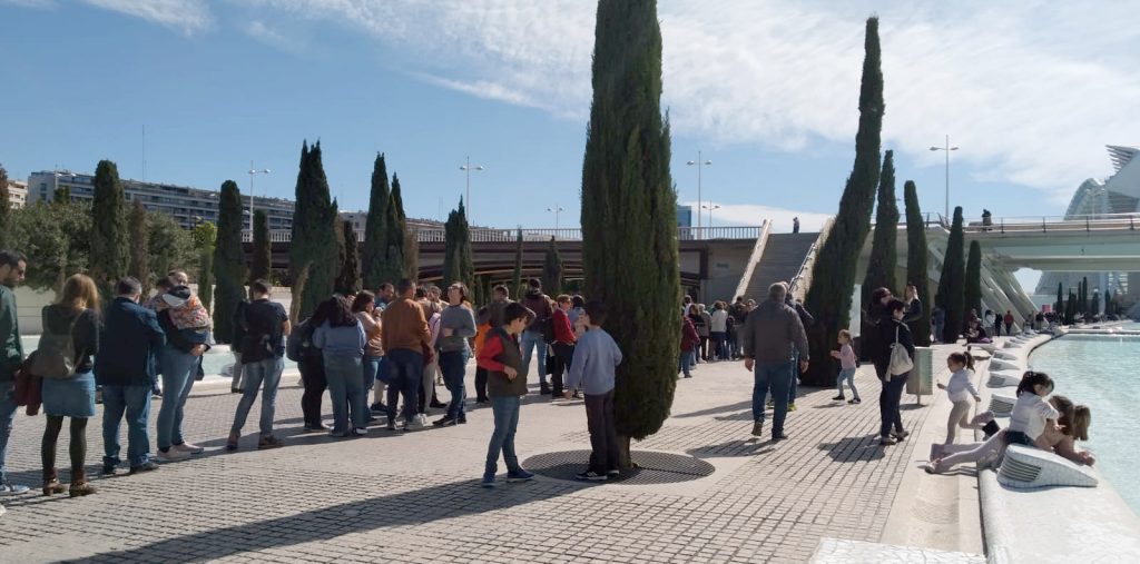 Nos encontrarás en el paseo de los cipreses, junto al Hemisfèric, frente a la entrada principal del Museu de les Ciències.