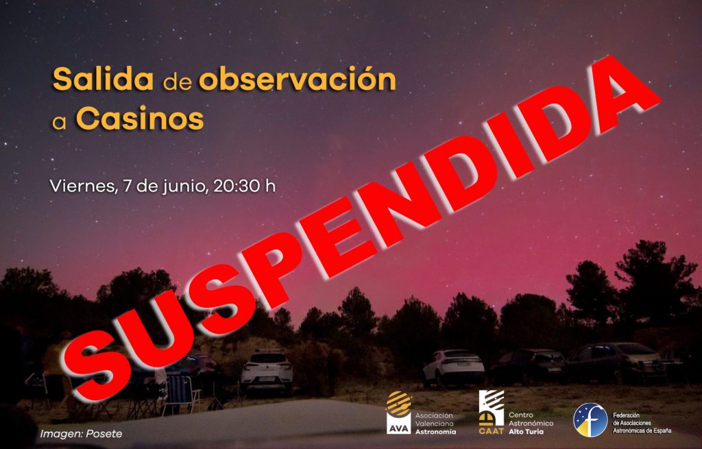 ATENCIÓN: debido a las malas previsiones meteorológicas, se SUSPENDE la salida a Casinos prevista para este viernes 7 de junio.