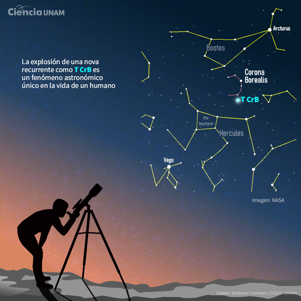 A unos 2600 años luz de la Tierra, en la constelación de la Corona Boreal, se ha estado cocinando desde hace unos meses un fenómeno astronómico único que tiene a los astrónomos y aficionados a la expectativa: el estallido de la nova T Coronae Borealis (T CrB), que podría ocurrir entre el mes de septiembre y hasta finales de este 2024.