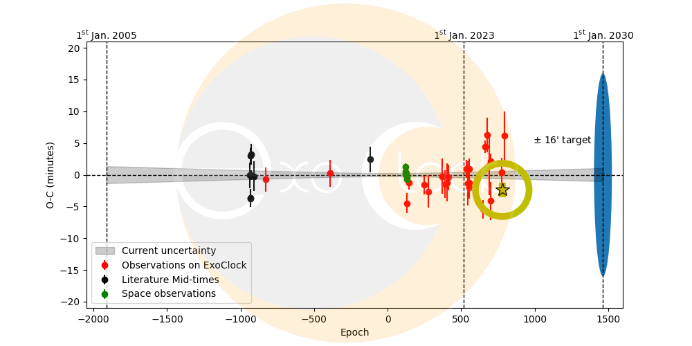 La diferencia O-C de -2.39 minutos respecto a la predicción del tránsito, algo muy aceptable.