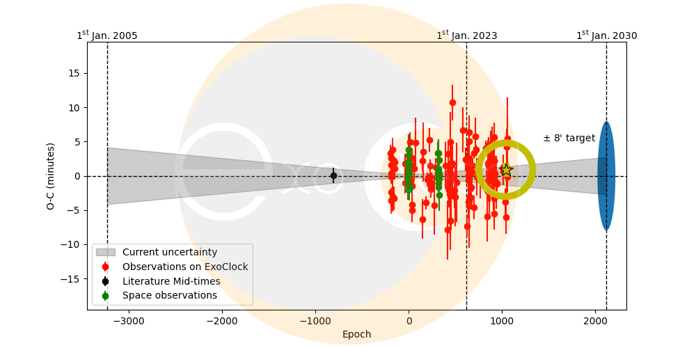 La diferencia O-C de 0.88 minutos respecto a la predicción del tránsito, por lo que es un gran resultado y en línea con el promedio del resto de observaciones.
