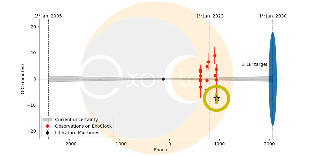 Este exoplaneta estaba marcado como prioridad baja, siendo posible su detección con telescopios aperturas mínimas de 7.96″. El O-C (diferencia entre la hora del tránsito observada y la calculada) es más alta de lo que nos hubiera gustado, la luna llena ha complicado la detección.