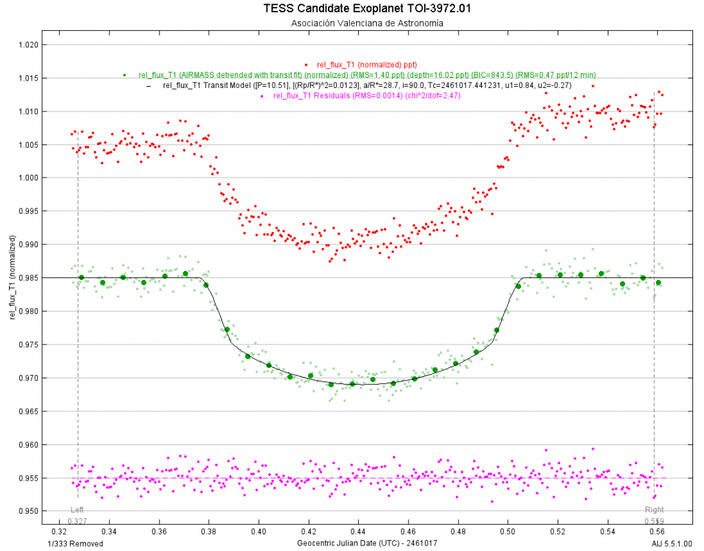El exoplaneta TOI-3972 es un candidato de la misión TESS que hemos publicado en el portal de VarAstro.