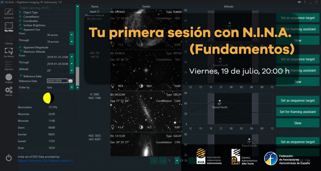 NINA (Nighttime Imaging ‘N’ Astronomy) es un programa de software gratuito diseñado para la astrofotografía. Facilita el control de telescopios, cámaras y otros equipos astronómicos, permitiendo a los usuarios planificar, automatizar y optimizar sus sesiones de observación y fotografía nocturna. Ofrece herramientas avanzadas para el enfoque, el encuadre y la captura de imágenes, mejorando significativamente la calidad y eficiencia del proceso astronómico.