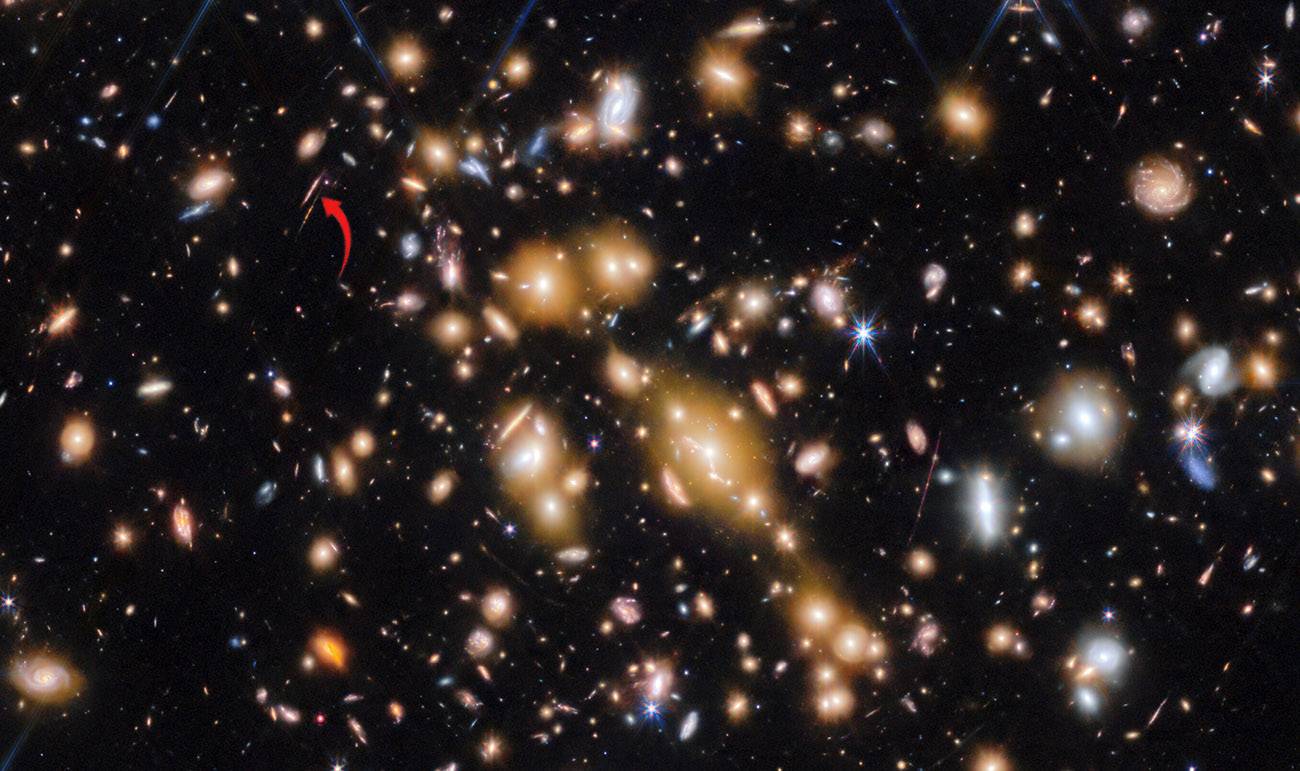 Las jóvenes galaxias del universo primitivo experimentaron importantes periodos de formación estelar, pero debido a lo lejos que se encuentran de la Tierra ha resultado todo un reto estudiar su luz y cuántas estrellas contenían. Ahora, gracias al telescopio espacial James Webb (JWST, de la NASA, la ESA y la agencia espacial canadiense), un equipo internacional de astrónomos ha detectado cinco cúmulos estelares ligados gravitacionalmente en el llamado arco de las Gemas Cósmicas (SPT0615-JD1). Es una galaxia fuertemente magnificada por un efecto conocido como lente gravitatoria, y captada cuando el universo tenía tan solo unos 460 millones de años (ahora tiene unos 13.800 millones).